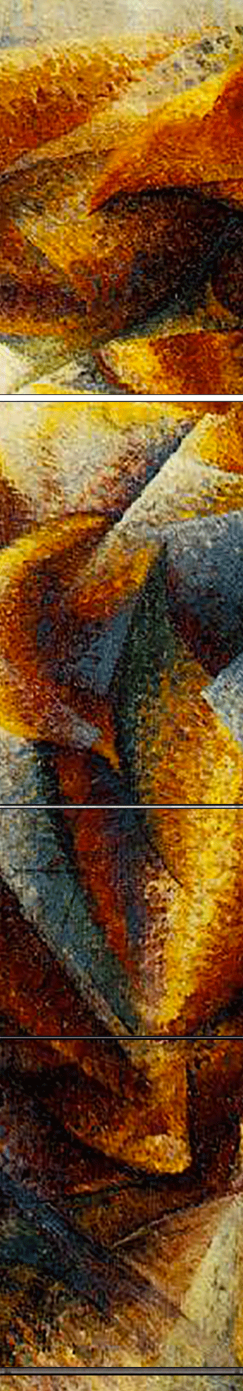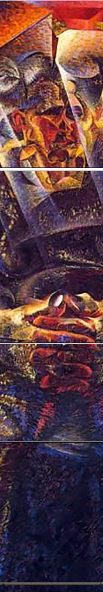 "In the brief life span of the Italian Futurist movement, the short-lived Umberto Boccioni was a blazing comet. ... Boccioni was a fiery theoretician of the movement, drafting two Futurist manifestoes in 1910 and 1912 that exalted the force and energy of contemporary life. They called for an art that glorified speed, violence and the machine age, one that above all reflected the dynamism of an engine-driven civilization."[9] --Grace Glueck, New York Times Art Critic